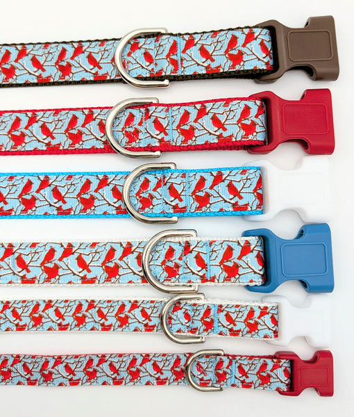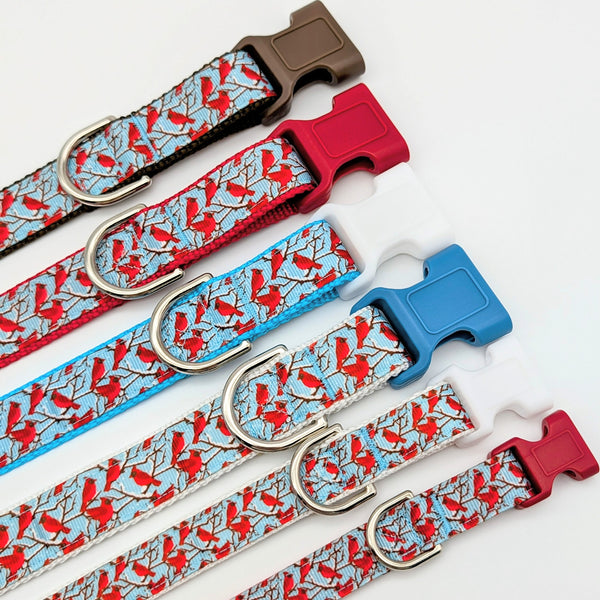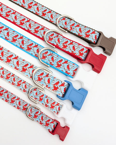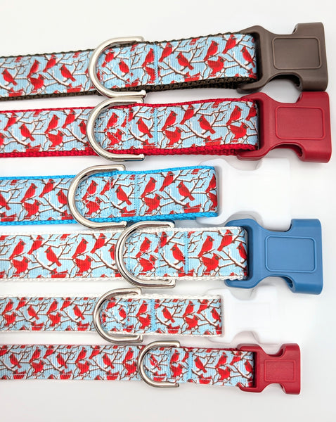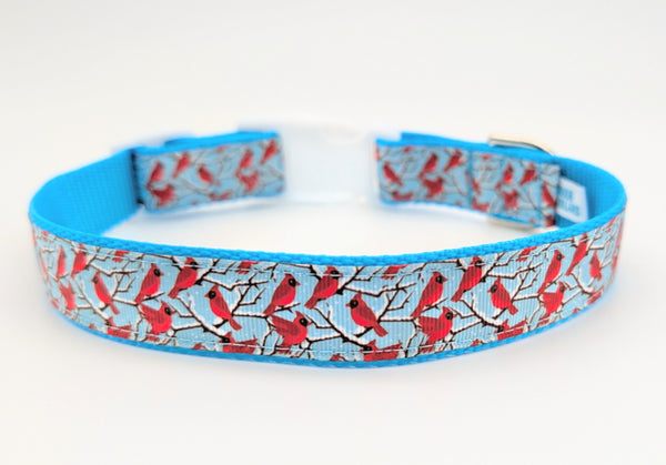 Bring a touch of winter beauty to your pup’s daily walks. This design features our featured Winter Cardinal ribbon—vibrant red cardinals perched on snowy branches against a crisp sky-blue background.